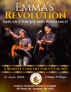 This concert supports Unitarian Universalist Legislative Ministry of Maryland (UULM-MD), helping to advance justice and advocacy efforts in our wider community.